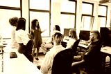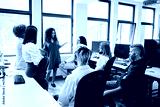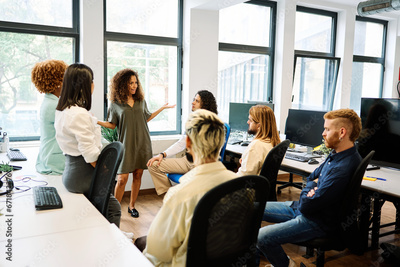 Leader speaking to colleagues in a coworking