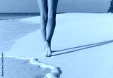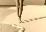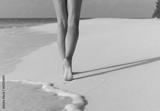 Beach travel - woman walking on sand beach leaving footprints