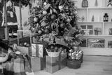 Christmas decoration, tree with red and gold toys. Interior decoration for the holiday.
