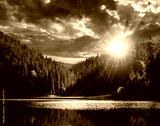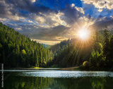 pine forest and lake near the mountain early in the morning at s