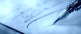 Fountain pen on an antique handwritten letter. Vintage nib pen and handwritten english cursive style font copperplate, spencerian. Old history background.