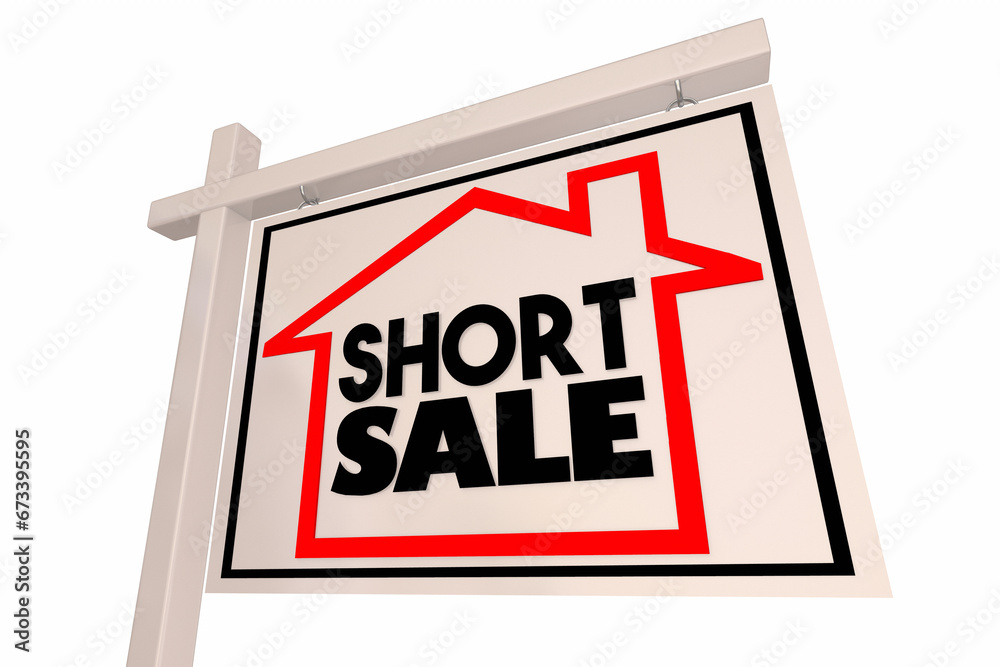 Short Sale House Home Sold Real Estate Sign Price Lower Amount Owed Loan Mortgage 3d Illustration