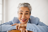 Excited to do it all over again: Mature business woman smiling in her office, wearing a classy business suit