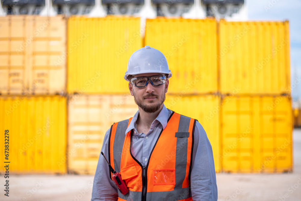 Engineer under discussion inspection and checking construction process railway switch and checking work on railroad station .Engineer wearing safety uniform and safety helmet in work.