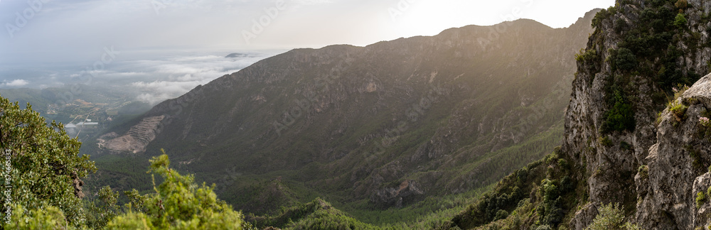Panoramic view of the Safor circus, an amphitheater-shaped geological formation with a maximum altitude of 1013 meters near Villalonga, in the province of Valencia, Spain
