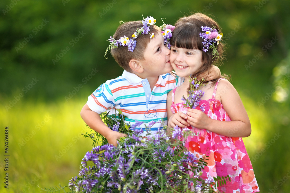 Portrait of a boy and girl in summer