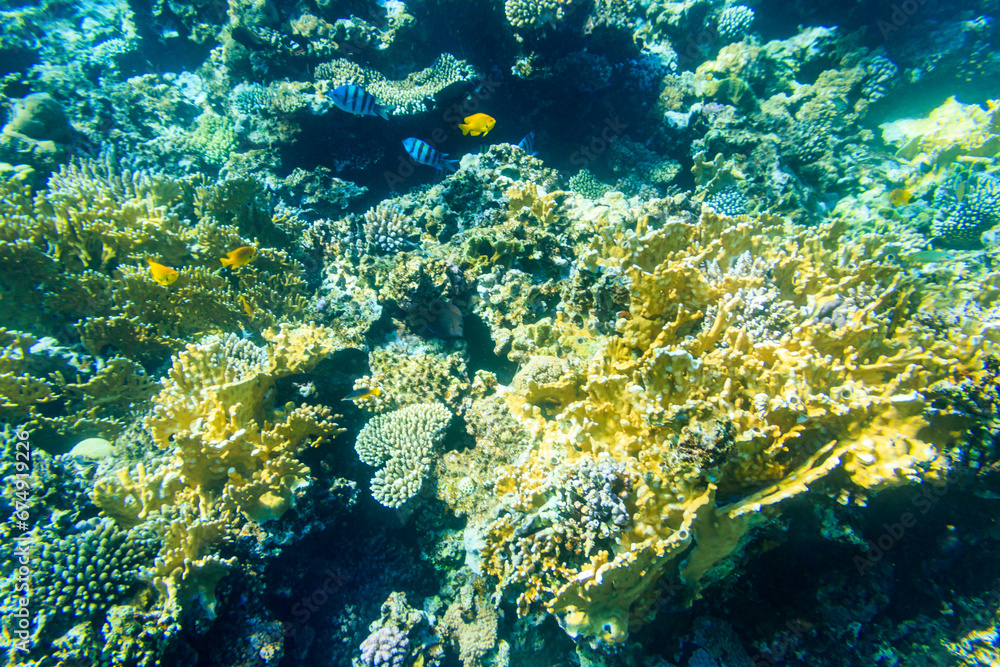 Different tropical fish at coral reef in the Red sea in Blue lagoon, Sinai peninsula in Egypt