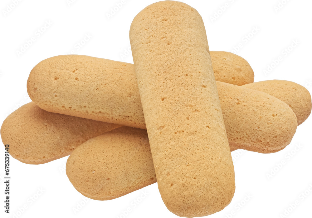Italian savoiardi biscuits, ladyfinger cookies isolated on white background
