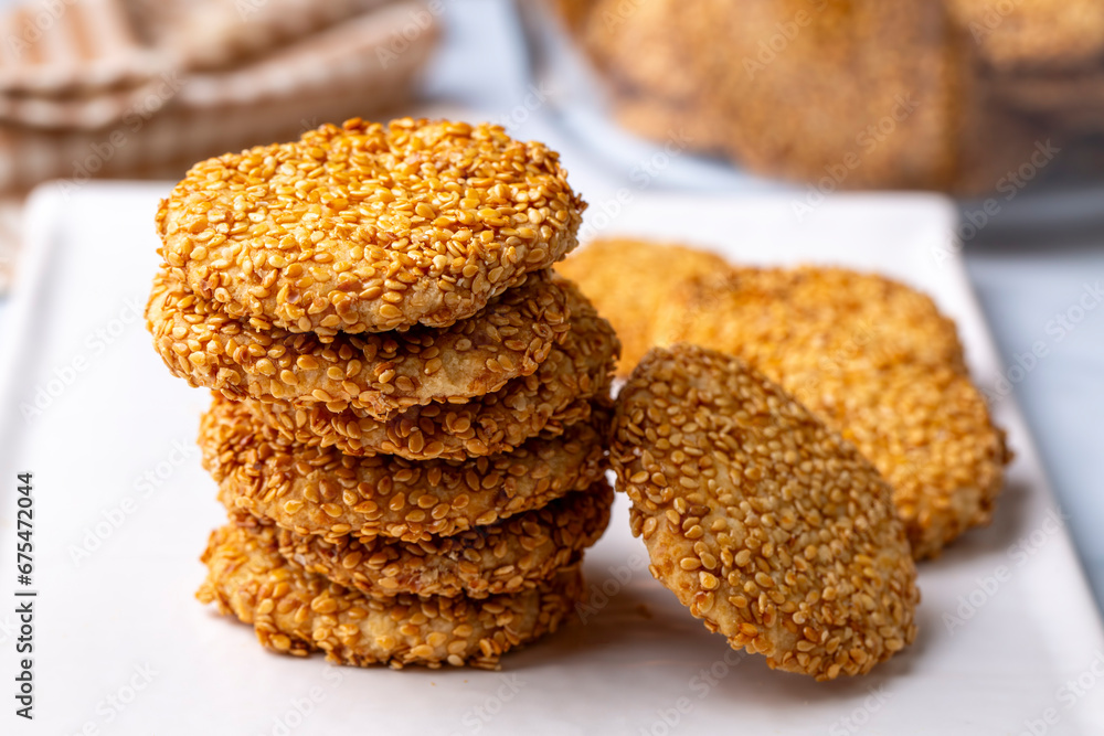 Ramadan sweets background. Cookies of El Fitr Islamic Feast. Egyptian cookies "Kahk El Eid" Turkish name; Kahke