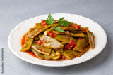 Traditional delicious Turkish food; Green beans with olive oil; Turkish name; Zeytinyagli taze fasulye