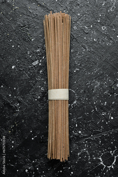 Dry buckwheat noodles. Buckwheat Japanese food. Healthy food. Top view.