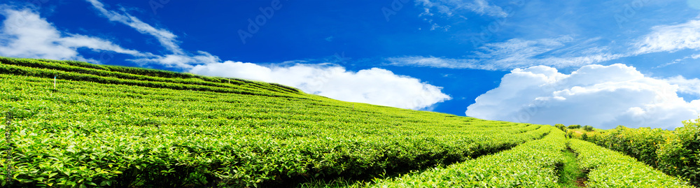 Panorama tea plantation with cloud and blue sky