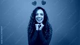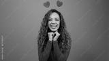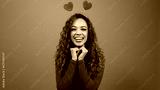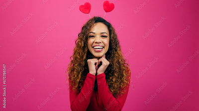 Cute young woman poses with hands under chin, dressed up for Valentine's Day