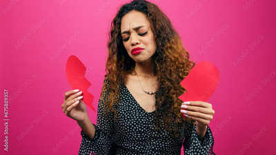 Brokenhearted young woman holds the pieces after break up, divorce