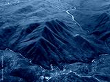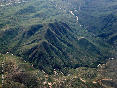Aerial view of beautiful mountains near the sea in Baja California Sur, Mexico