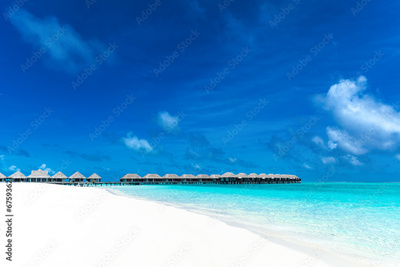 Beautiful beach with water bungalows at Maldives