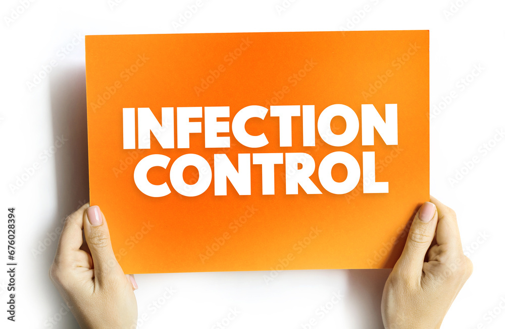 Infection Control - prevents or stops the spread of infections in healthcare settings, text concept on card for presentations and reports