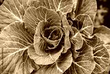 Beautiful natural background with cabbage, top view of green leaves
