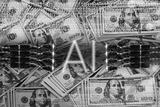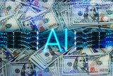 AI and finance concept. Artificial intelligence, of bills 100 US dollars. Making money in financial markets with new technology generative AI Machine Learning tools