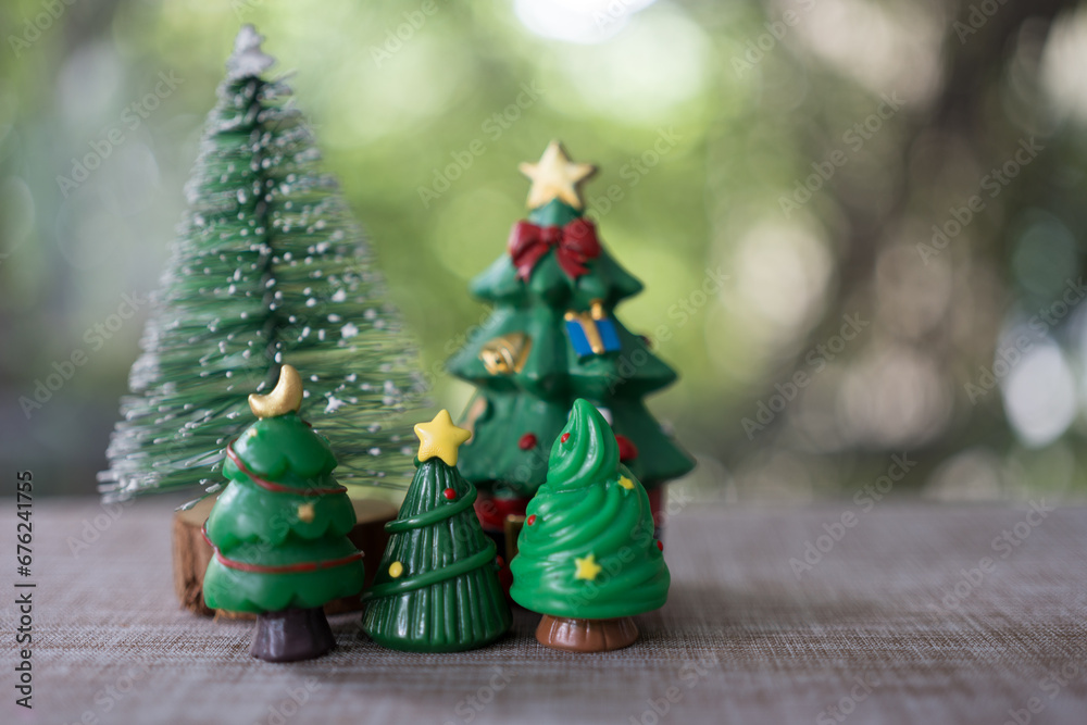 Many of Christmas trees of various size. The concept of Merry Christmas and Happy Holidays