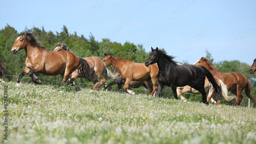 Very various barch of horses running on pasturage