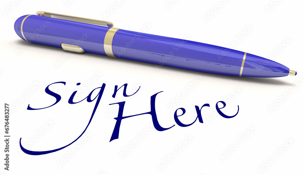 Sign Here Your Name Pen Agree Contract Apply Autograph Accept Terms Conditions 3d Illustration