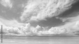 Blue sky with clouds above the sea background