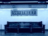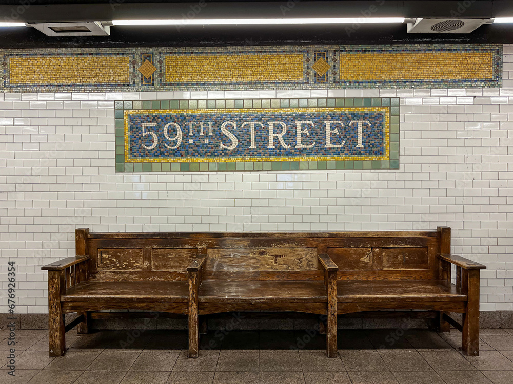 59th street subway sign above a wooden bench in Manhattan, New York City, USA