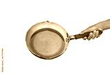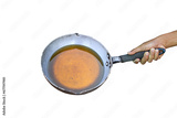 Man holds a pan of old vegetable oil or used vegetable oil. Isolated on white background. PNG