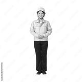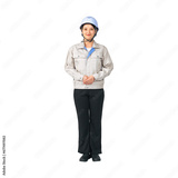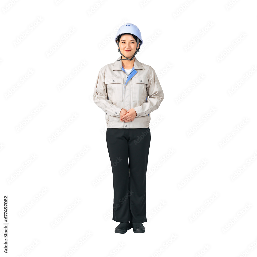 ヘルメットと作業服を着た女性 作業員 エンジニア 切り抜き背景透過PNG