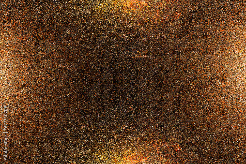 Black dark orange red brown shiny glitter abstract background with space. Twinkling glow stars effect. Like outer space, night sky, universe. Rusty, rough surface, grain.
