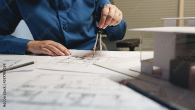 Interior architect working with blueprint planning in modern office, engineering concept. .