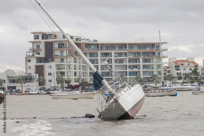 yacht stranded on the malecon of La Paz after the passage of Hurricane Norma on October 2023 Baja California Sur