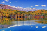 秋の青木湖と白馬連峰
