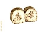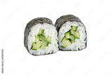 Sushi closeup isolated on white background. Sushi with seaweed nori rice and daikon or cucumber.
