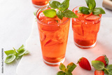 Cold and refreshing strawberry basil cocktail, spring or summer cocktail or mocktail