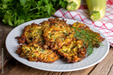 Mucver, Turkish traditional food. (Turkish cuisine) Homemade Food with Zucchini.