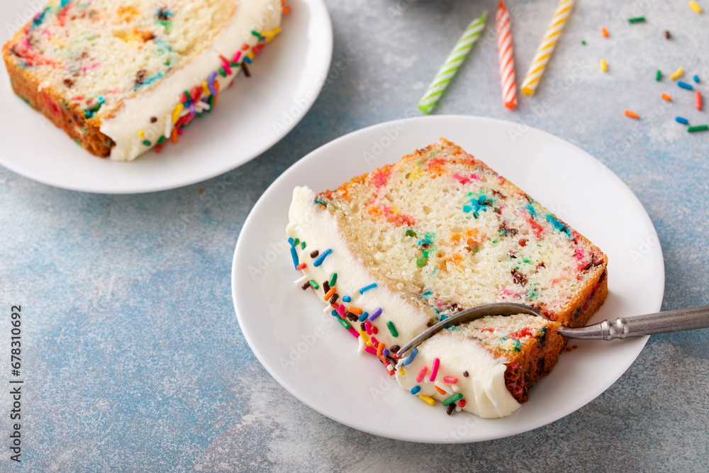 Birthday cake loaf cake or funfetti quick bread with sprinkles