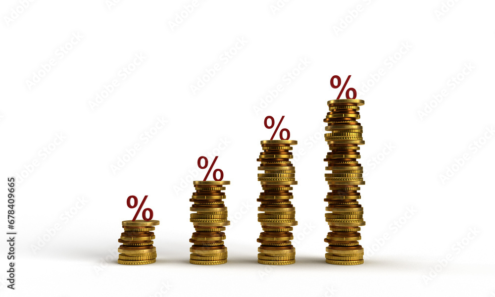 coin golden yellow orange color percent growth up financial investment marketing interest rate usa us currency banking price money dollar debt increase economy wealth loan stock tax industry deposit