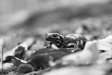 Spotted adult fire salamander in orange leaves in autumn forest. Wildlife photography