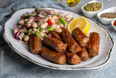 Turkish Tekirdag or inegol Kofte with Piyaz Salad