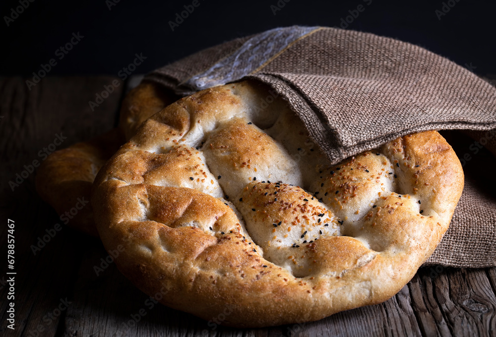 Ramadan Pita (Turkish name; Ramazan Pidesi) Traditional Turkish bread for holy month Ramadan