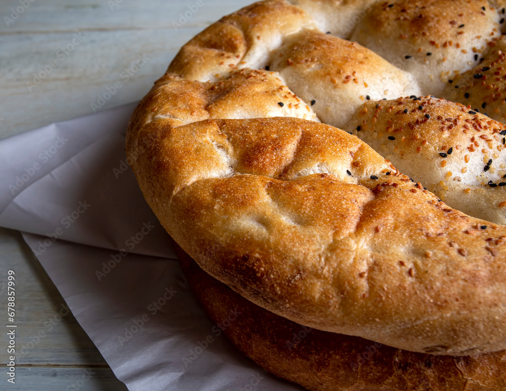 Ramadan Pita (Turkish name; Ramazan Pidesi) Traditional Turkish bread for holy month Ramadan