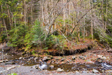 Beautiful autumn or fall landscape in Carpathian Mountains, Ukraine. Mountain river in the forest with stones. Tatariv, Ivano-Frankivsk Oblast. Road to Huk waterfall. Selective focus