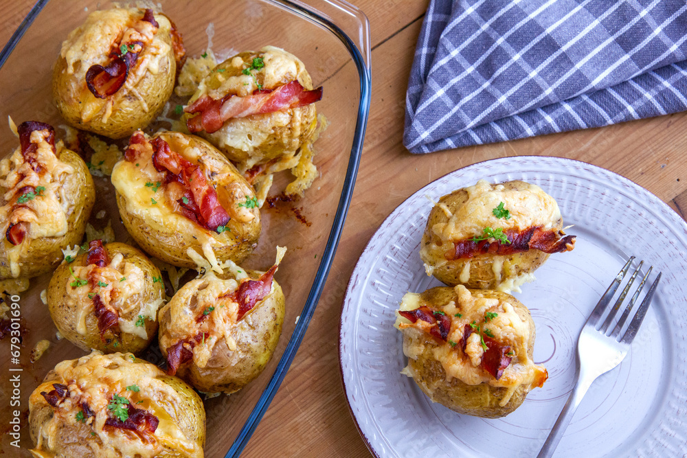 Ziemniaki pieczone z boczkiem i mozzarellą