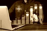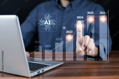 Businessman using AI Artificial Intelligence for planning business growth in future, AI for Business concept.