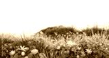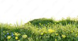Verdant Hill Blooming with Yellow Flowers in Spring. 3D render.