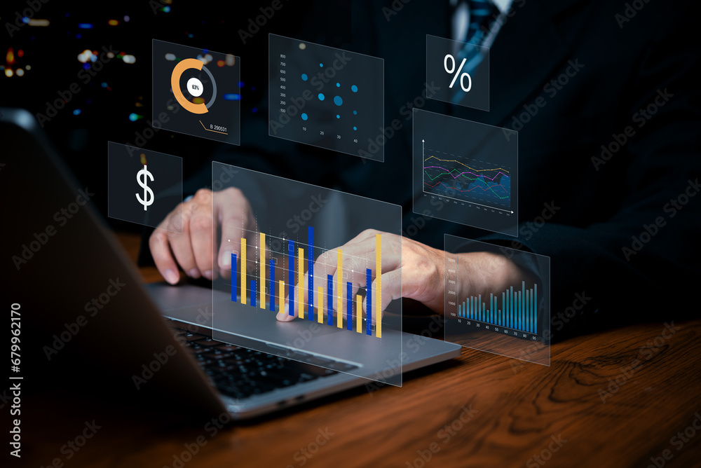 Marketing automation Finance ROI Return On Investment with Business Technology Analysis and KPI Metrics Digital Marketing Data Graph Strategy Target