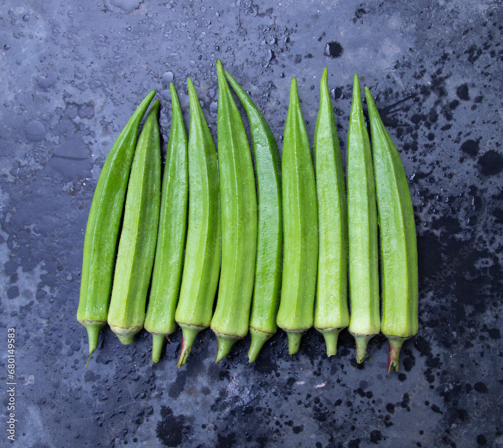 Fresh organic vegetables Lady's Finger or Okra on the Dark concrete floor