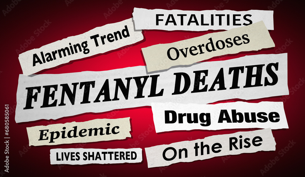 Fentanyl Deaths News Headlines Rising Increase Overdoses Drug Addiction 3d Illustration